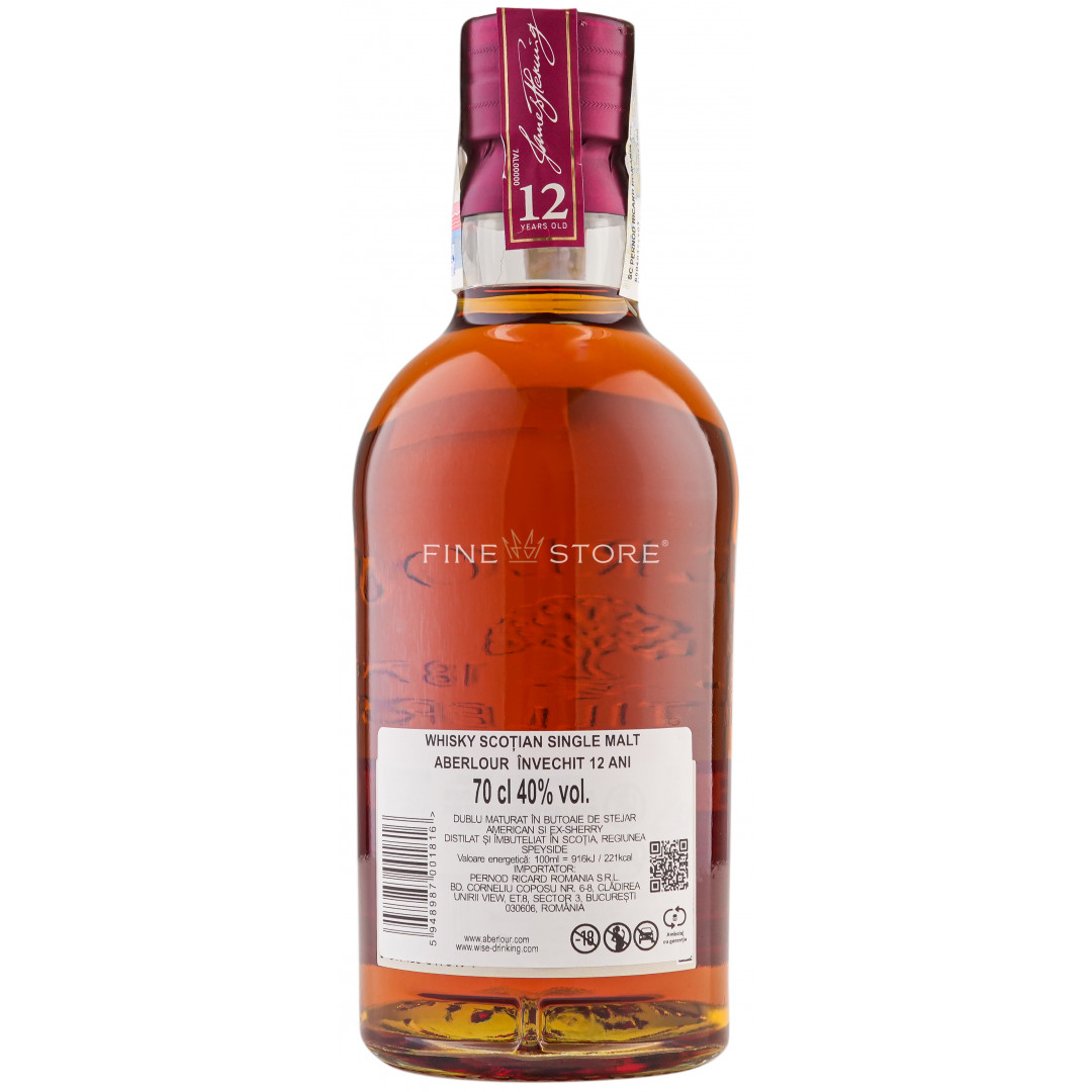 Aberlour reprezintă întotdeauna alegerea potrivită pentru cei care doresc să savureze un single malt specific zonei Speyside, iar de această dată avem în față un whisky maturat în două tipuri de butoaie (stejar şi sherry). Înainte de îmbuteliere, conţinutul butoaielor este amestecat pentru a armoniza şi echilibra băutura, astfel că profilul aromatic dezvăluie note fructate şi condimente dulci, uşor înţepătoare, cu influențe puternice de sherry, dar nu dominante.