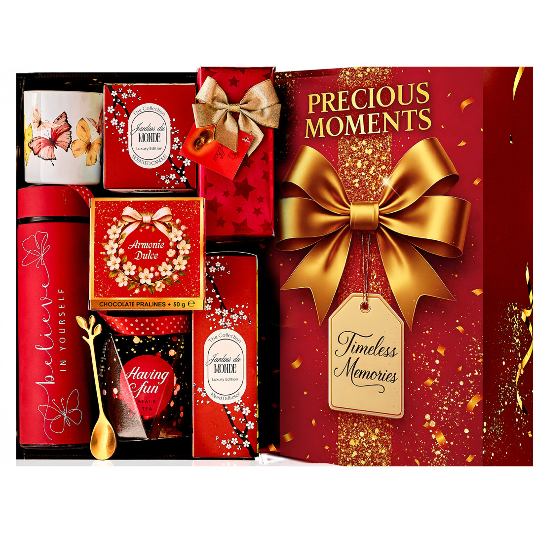 - Termos metalic Enjoy cu infuzor inclus, culoare eleganta rosu-mat si cutie cadou