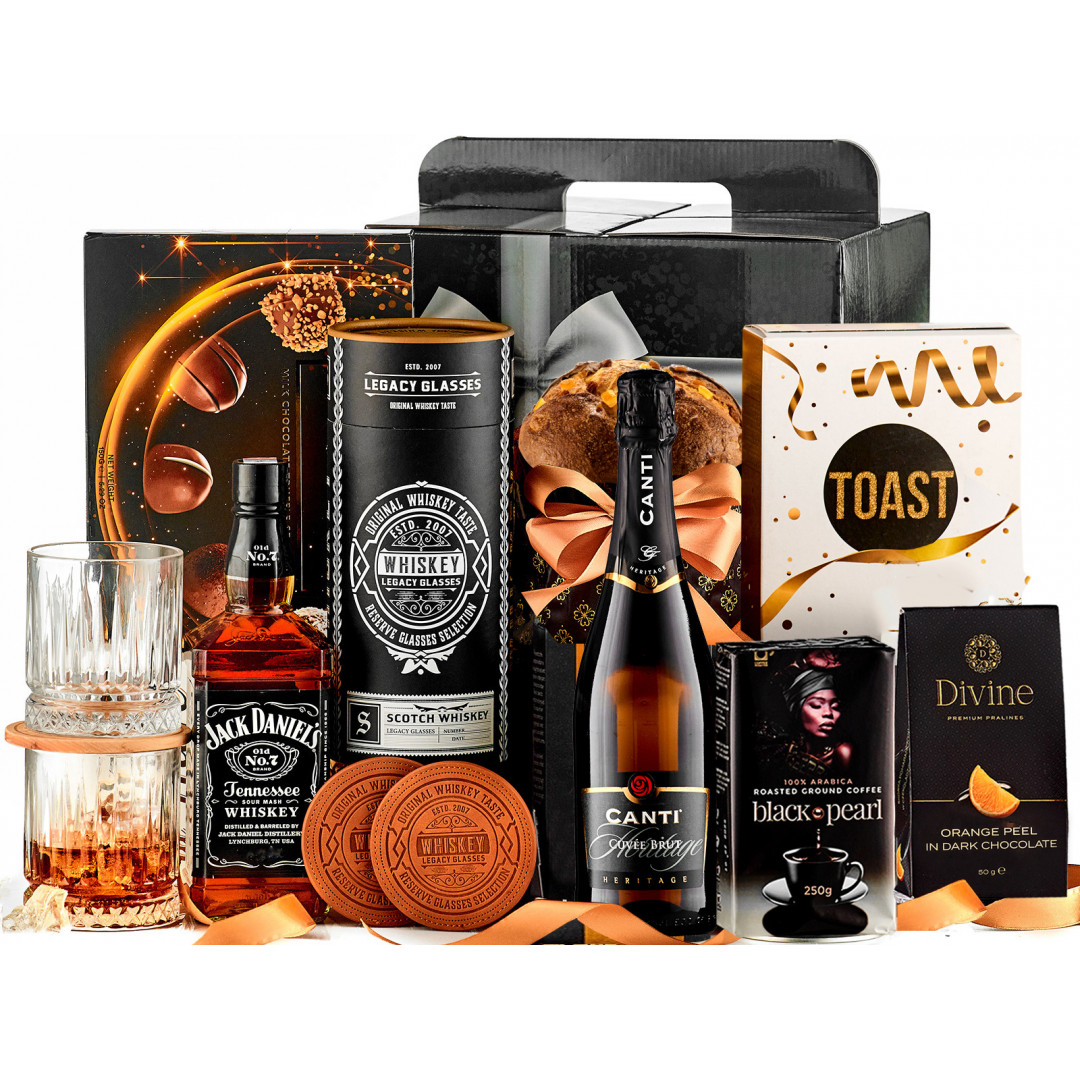 - Set Tube Legacy Glasses cu 2 pahare de whiskey si 2 coastere elegante din piele