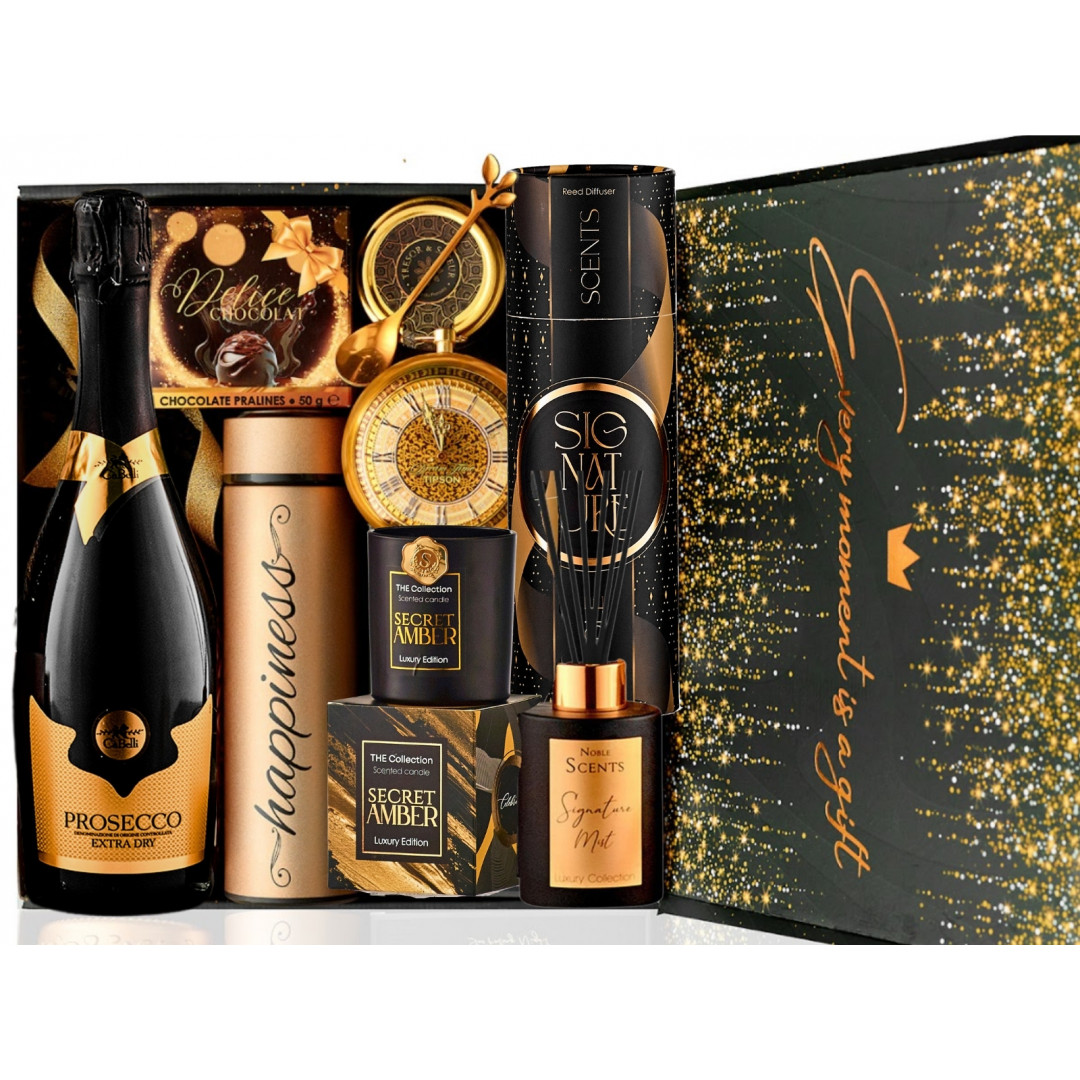Cadoul Glow of Happiness este un dar exclusivist, dedicat celor care apreciază rafinamentul și momentele de răsfăț. Cu o selecție de produse atent alese, acest cadou este perfect pentru a aduce un zâmbet și un strop de strălucire în viața oricărui iubitor de gusturi fine! Fiecare produs pe care îl conține, de la băuturi elegante până la delicii dulci și produse de îngrijire premium, transmite bucurie și te invită să explorezi universul celor mai rafinate arome, forme și parfumuri.