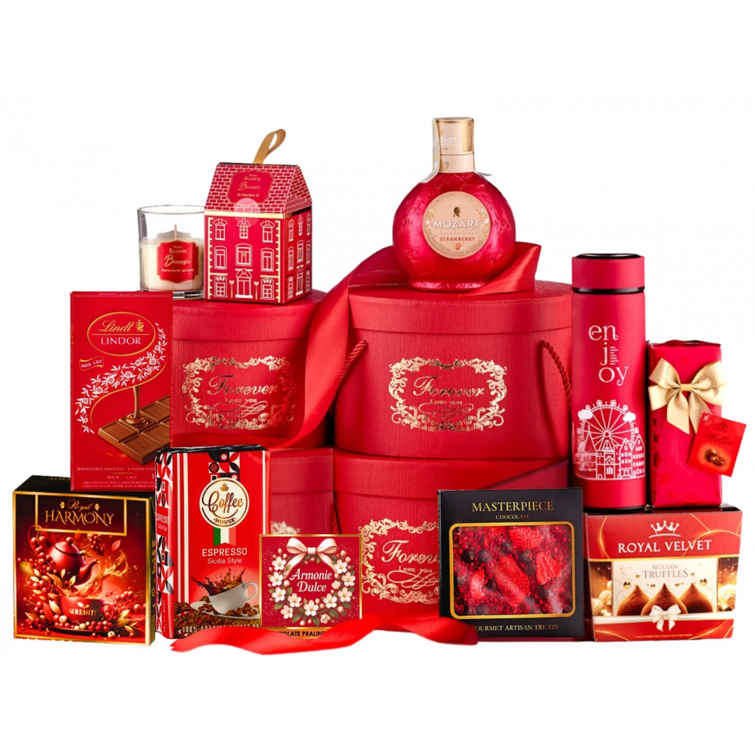 Surprinde-o cu un cadou sofisticat, care combină luxul și dulceața în fiecare detaliu! Cadoul Red Velvet este gândit pentru a oferi o experiență memorabilă printr-un adevărat răsfăț al simțurilor, pus pe seama lichiorului Mozart Strawberry White Chocolate Cream, a trufelor de ciocolată, a bomboanelor cu marțipan și a ceaiului Royal Harmony Serenity Tea, ideal pentru relaxare. Adaugă la acest deliciu o lumanare plăcut parfumată, dar și un set elegant de 3 cutii cadou cu elemente decorative aurii și obții cadoul ideal pentru o femeie cu gusturi fine, care apreciază momentele de răsfăț.