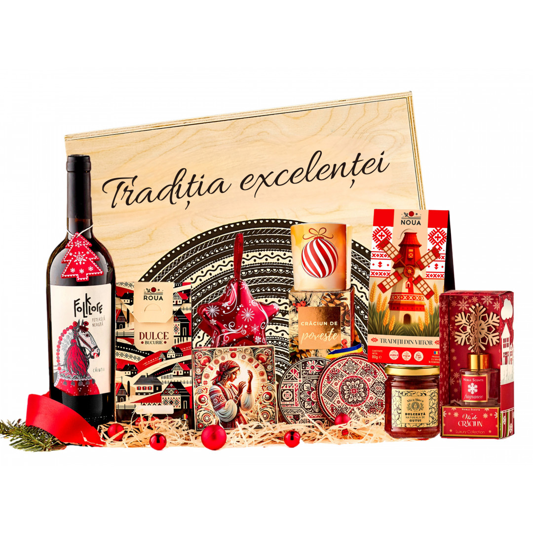 - Cufar de lemn cu mesaj serigafiat pe capac Tradiţia Excelenţei