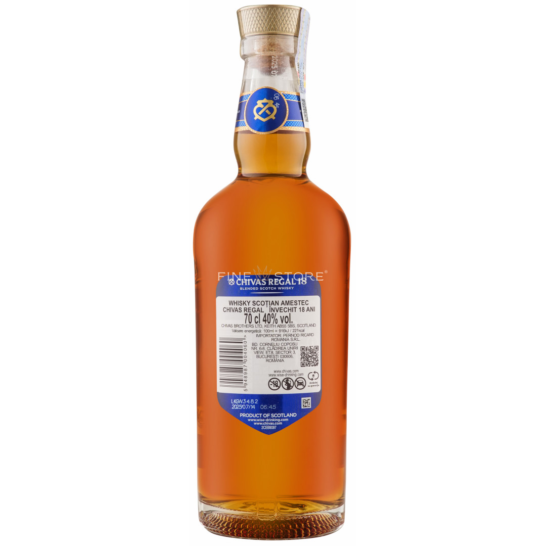 Chivas Regal 18 ani este un blend premium inedit, în a cărui compoziţie intră un procent mare de single malt-uri scoţiene atent selecţionate, de cea mai bună calitate, învechite timp de 18 ani. Sortimentul este creat de Collin Scott (Master Blender Chivas Regal) şi a fost lansat pe piaţă în anul 1997. Blendul a fost supranumit “amestecul destinat adulţilor”, deoarece se adresează în special cunoscătorilor, persoanelor care preferă o băutură matură şi celor cu spirit independent. Chivas Regal 18 ani are o formulă unică, care conturează un gust complex şi deosebit, potrivit pentru a fi savurat picătură cu picătură.