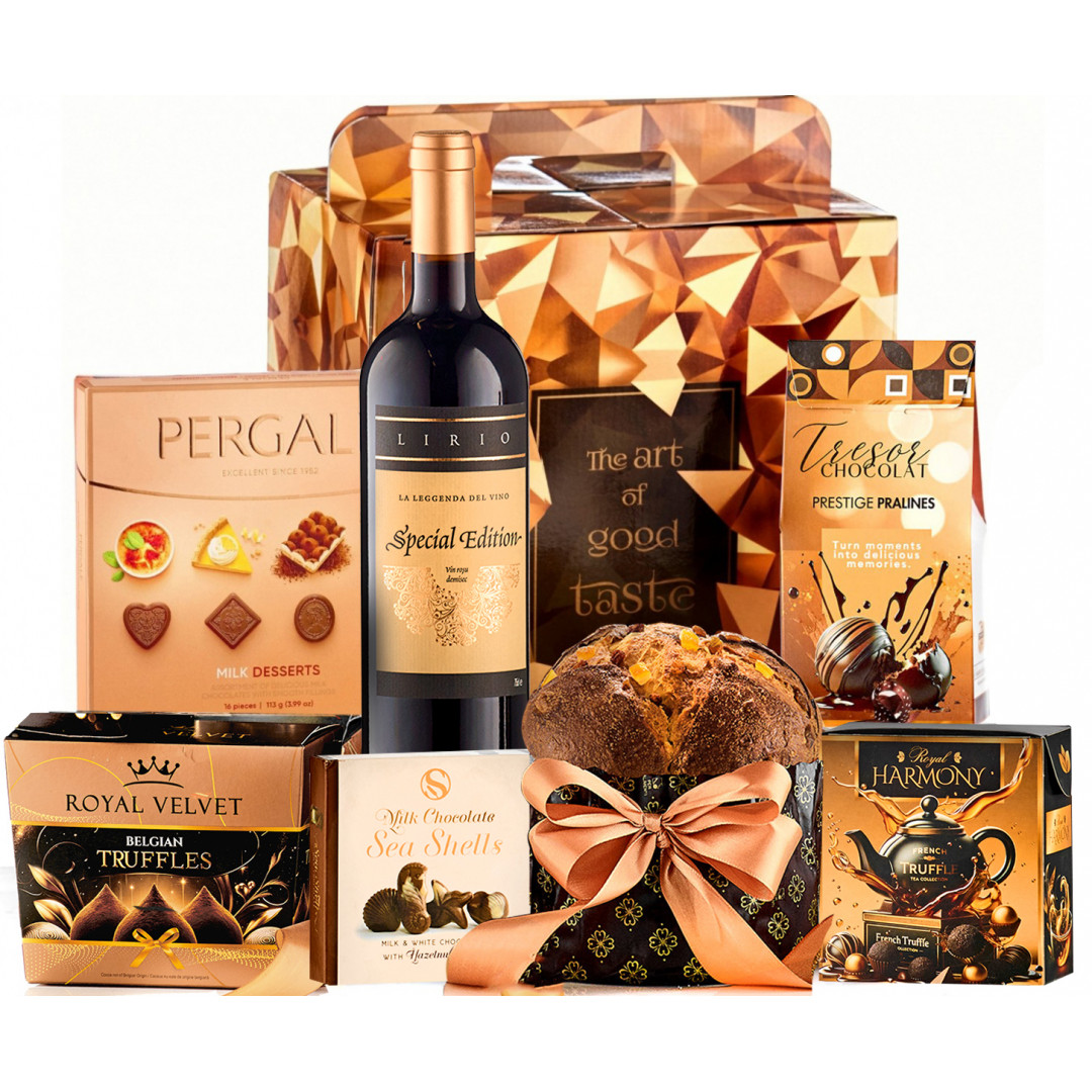 O vorbă veche din popor spune că gusturile se educă, iar noi completăm această zicală spunând că gusturile rafinate se educă savurând delicii alese precum cele care se regăsesc în Cutia Cadou Art of Good Taste. Descoperă chiar tu arta degustării unui vin roşu cu adevărat special şi arta savurării unor dulciuri de poveste sau oferă toate aceste mini comori unei persoane dragi, căreia ţi-ai dori să îi faci ziua mai frumoasă. Sigur s-ar bucura de acel panettone cu stafide şi aromă de portocală, de pralinele Piaceri al Tiramisu, de napolitanele delicioase, de trufele savuroase, de turta dulce cu scorţişoară şi de toate celelalte mici răsfăţuri adunate într-un cadou ce poartă semnătura bunului gust.