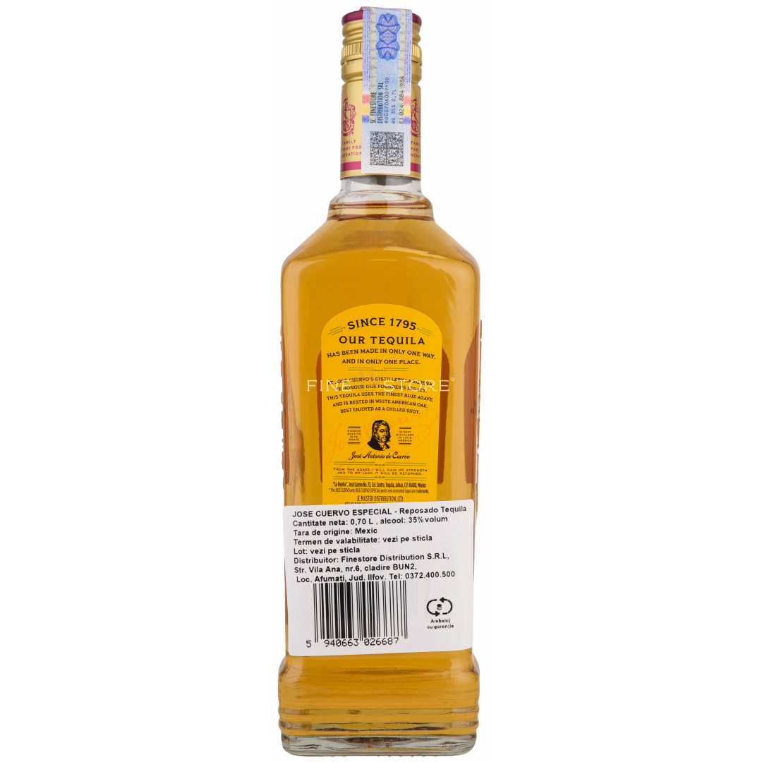 Jose Cuervo Gold este un sortiment auriu tânăr, obţinut prin amestecul mai multor sortimente învechite şi neînvechite. Legenda spune că tequila Jose Cuervo a jucat un rol important în inventarea cocktailului Margarita în anii ‘40, fiind şi astăzi baza perfectă pentru această băutură celebră. Jose Cuervo Gold este foarte popular în Statele Unite. Sortimentul este obţinut din ingrediente atent selecţionate, respectând cele mai înalte standarde de producţie. De accea poate fi savurat cu atâta plăcere şi simplu, alături de sare şi lime.