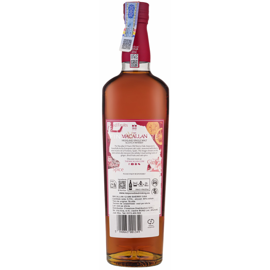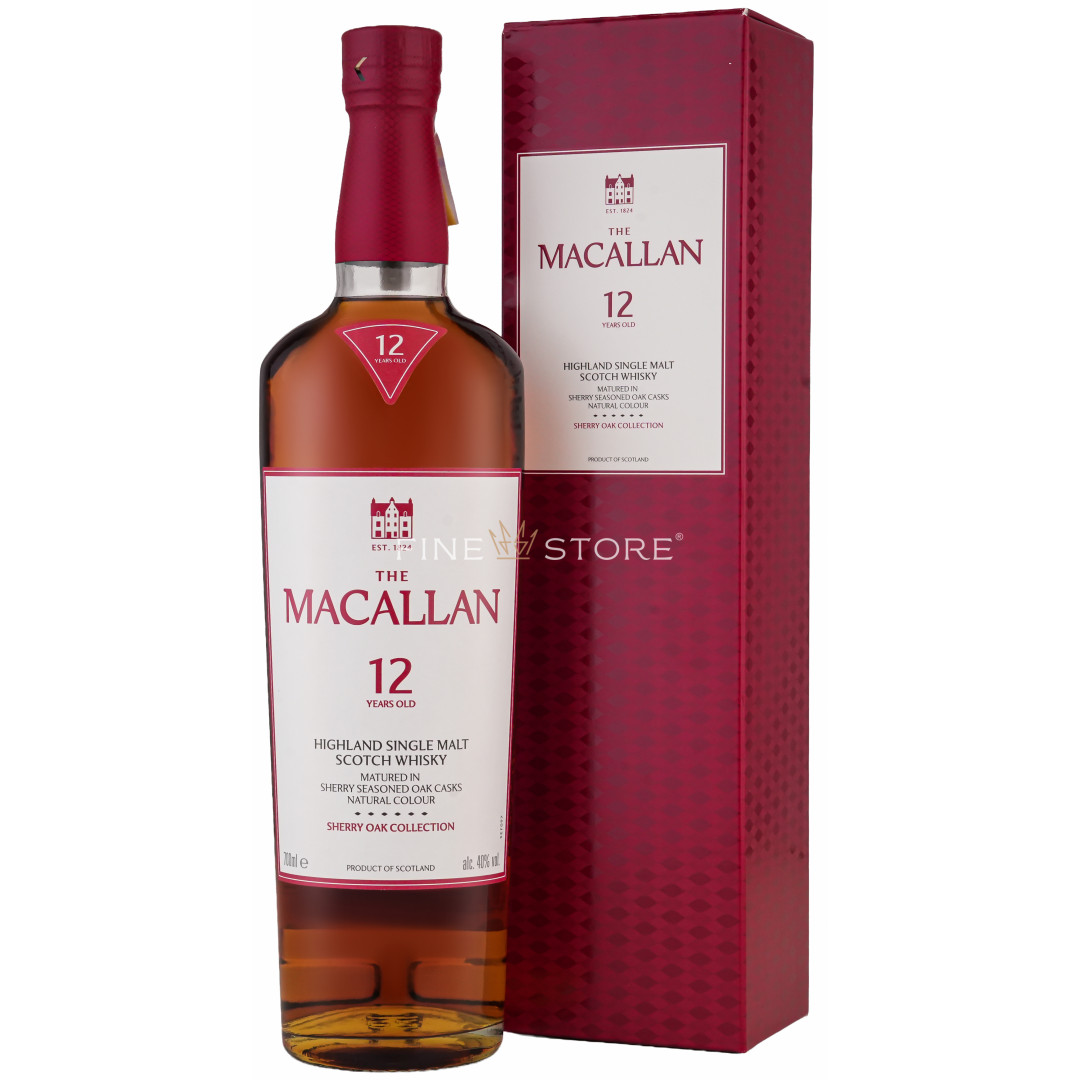 The Macallan Sherry Oak 12 ani se numără printre cele mai apreciate sortimente din grupa sa de vârstă din lume. Pentru gama Sherry Oak, producătorii folosesc butoaie din lemn de stejar asezonate cu sherry importate din Spania, acestea fiind cele mai costisitoare tipuri de butoaie folosite pentru maturarea sortimentelor de scotch whisky. Sortimentul este potrivit pentru a fi savurat alături de prieteni, pentru că beneficiază de acel caracter elegant, bogat, echilibrat şi expresiv, apreciat de toţi iubitorii de whisky, indiferent de preferinţe. Single malt-ul poate fi consumat simplu, cu gheaţă, cu puţină apă sau poate fi folosit pentru a crea baza pentru diverse cocktailuri.