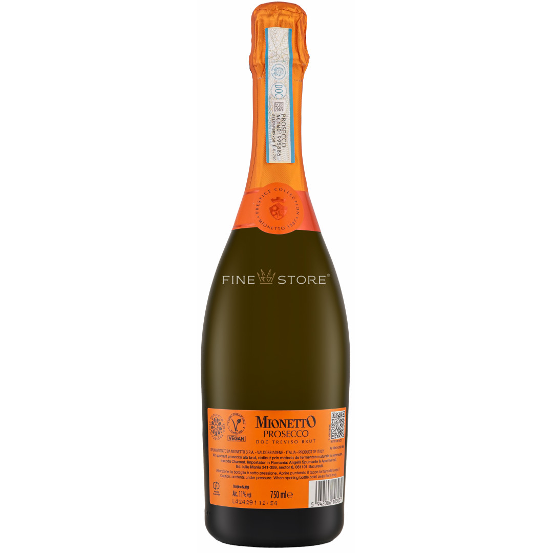 Mionetto răsfaţă zilele de vară cu un prosecco multipremiat, obţinut din struguri Glera culeşi din zona Treviso. Gama Mionetto Prestige este una clasică, care aduce în prim-plan istoria cramei prin însăşi emblema oblică ce decorează sticla - simbol al cramei încă de la începuturi. Strugurii sunt presaţi uşor şi fermentaţi fără pieliţe, fiind aleasă metoda Charmat, cu fermentare secundară, pentru vinificare. Prestigiul, eleganţa, calitatea şi stilul casei se regăsesc din plin în paleta aromatică a acestui spumant italian, al cărui buchet fastuos se lasă alintat de perlajul fin, vibrant. Savuraţi vinul la 6° - 8°C, ca aperitiv sau împreună cu preparate pe bază de peşte, legume şi ciuperci pregătite la grătar.