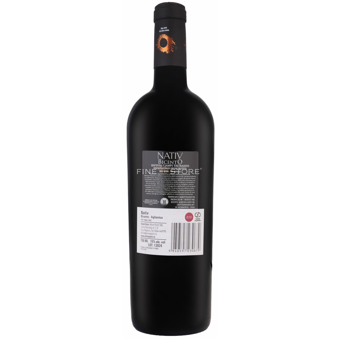 Vinul vedetă al cramei Azienda Nativ, Bicento dezvăluie mirajul deplin al unui terroir extraordinar, unde aromatica soiului Aglianico atinge perfecţiunea. Pe solul vulcanic al Campaniei , la baza vulcanului Vezuviu, podgoria Nativ îşi ocroteşte viile vechi de Aglianico, care au atins venerabila vârstă de două sute de ani. Soiul este specific pentru sudul Italiei şi dă naştere unor vinuri pline de fruct şi tanini, iar în cazul vinului Nativ Bicento, acesta se exprimă la superlativ printr-o pleiadă de arome fructate şi vanilate, echilibru, tanini catifelaţi şi o aciditate minunată. Vorbim de un vin ireal, incitant de dens şi de profund, al cărui postgust încununează degustarea intens fructată cu adieri fine de fum, tot aşa cum ceaţa densă învăluie uşor pădurile noaptea, toamna târziu. Nativ Bicento petrece 18 luni în baricuri franțuzești, unde îşi defineşte pe deplin gustul sublim, perfect de savurat la 16-18 grade Celsius în asocieri culinare cu preparate din carne roșie, osso buco, brânzeturi maturate sau brânzeturi dulci, decantat cu o oră înainte de servire.
