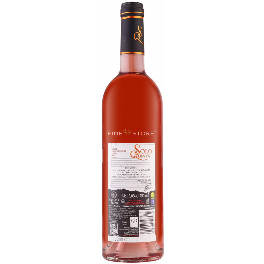 Solo Quinta Roze reuneşte aromele a cinci soiuri de struguri pentru a crea un gust unic, de-a dreptul fermecător. În acest cupaj, soiurile sunt alăturate în proporţii perfect echilibrate, pentru a obţine o paletă aromatică splendidă, iar vinul este fermentat exclusiv în butoaie din oţel inoxidabil, fiind îmbuteliat imediat pentru a-şi păstra prospeţimea şi aromele inedite. Savuraţi vinul la o temperatură de 8-10°C alături de preparate din bucătăria asiatică, brânzeturi semitari, salate cu peşte sau deserturi cu fructe.