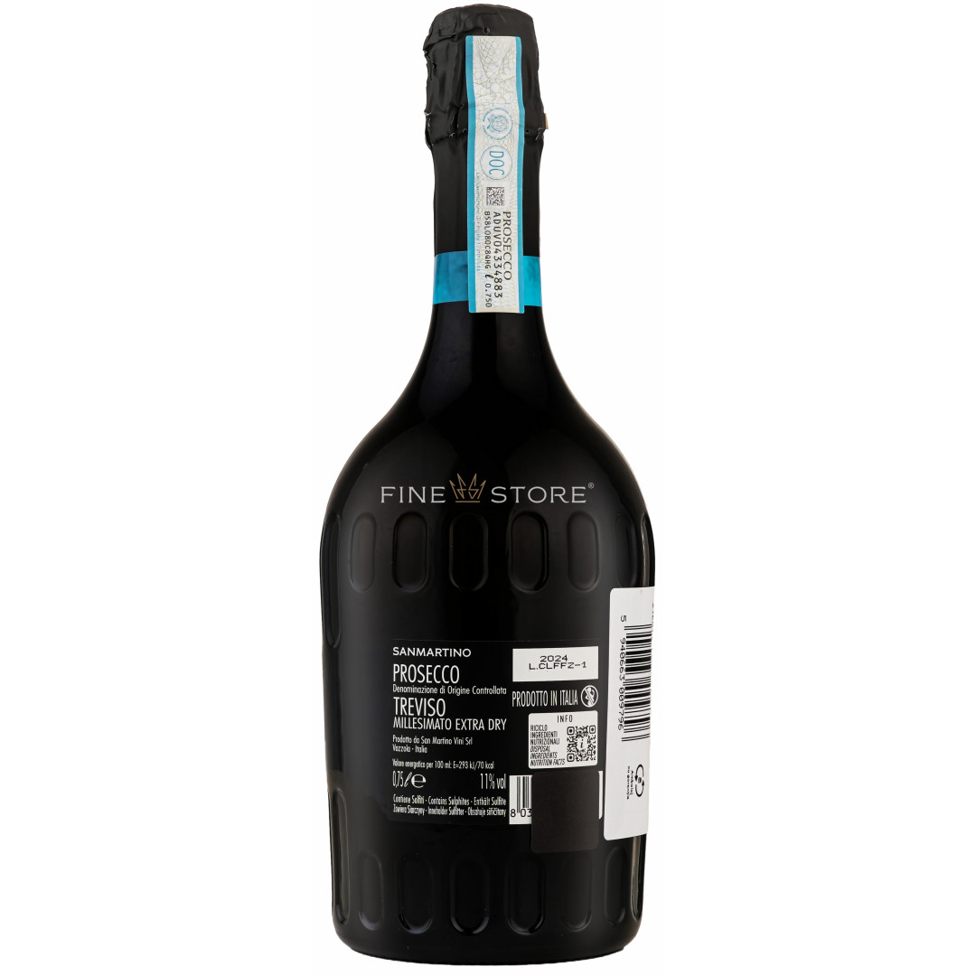 Millesimato Extra Dry este obţinut din struguri de cea mai bună calitate, atent selecţionaţi din podgoriile domeniului San Martino. După macerarea criogenică a strugurilor, vinul de bază obţinut începe procesul de vinificare prin metoda Charmat. Pasul următor constă în adăugarea fermenţilor şi păstrarea vinului la o temperatură controlată. În acest timp, sortimentul dezvoltă un perlaj fin, persistent, care conferă vinului un caracter proaspăt şi revigorant. Versiunea Extra Dry se potriveşte ca aperitiv sau cu preparate pe bază de peşte.