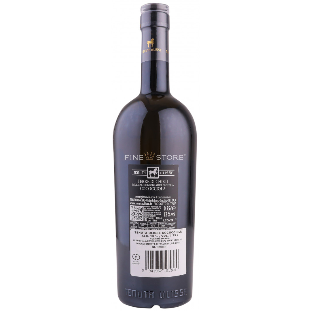 Soiul Cococciola este un soi târziu, mai puţin cunoscut, fiind unul specific provinciei italiene Chieti, unde este crescut în condiţii speciale. Cu o structură medie, o aciditate ridicată şi aromă intens vegetală, acest vin face deliciul anotimpului cald prin prospeţimea deosebită pe care o etalează pe toată durata degustării. Tenuta Ulisse Cococciola Terre di Chieti îşi desăvârşeşte caracterul în urma unui proces de învechire de trei luni, care se desfăşoară în tancuri de inox, pentru ca mai apoi să îşi dezvăluie calităţile finisate în pahar, la o temperatură de consum ideală cuprinsă între 8 şi 10 grade Celsius. În ceea ce priveşte asocierile culinare, acest vin se dovedeşte a fi foarte versatil, potrivit fiind cu brânzeturi proaspete, peşte, aperitive sau mici gustări cu legume şi mezeluri fine.