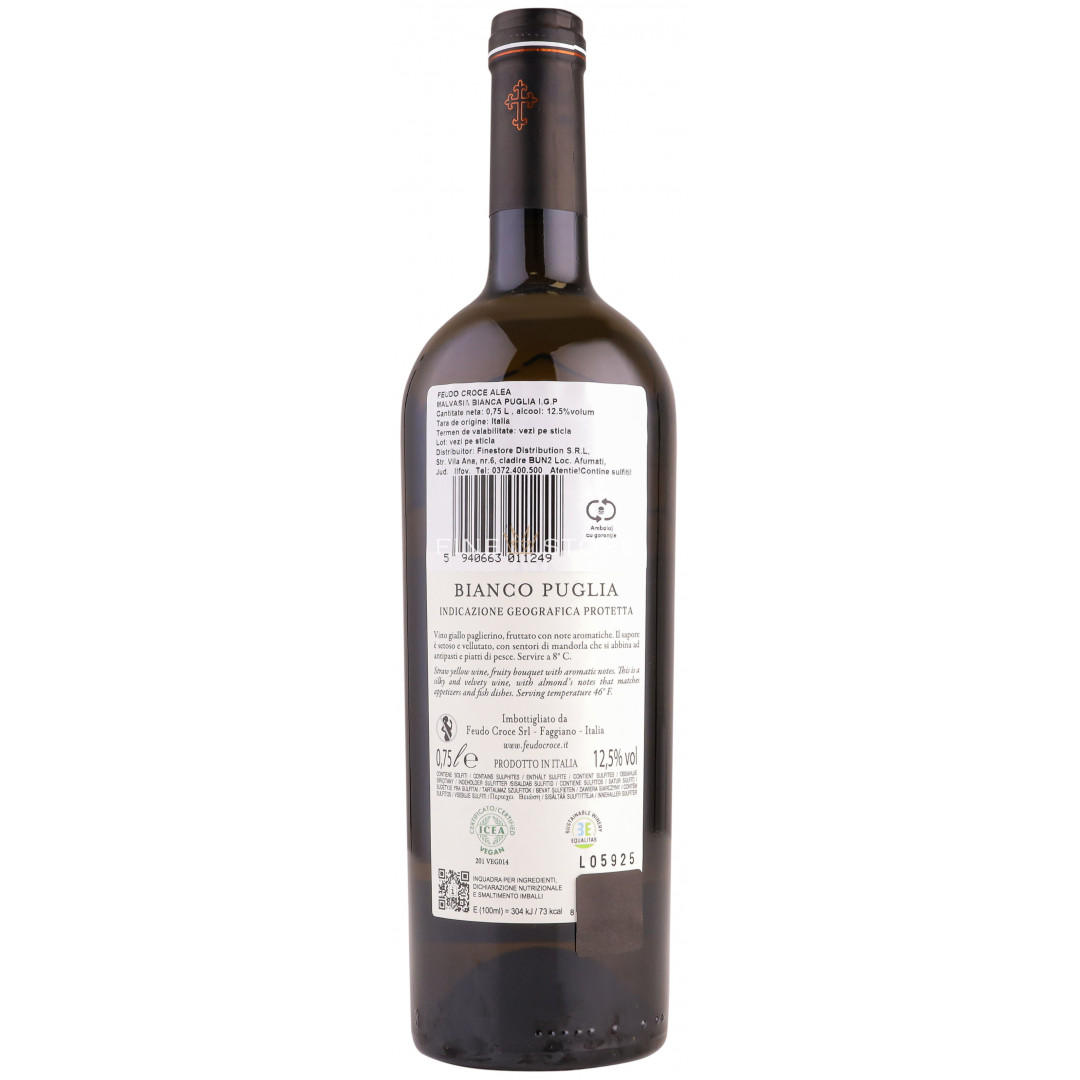 Sortimentul obținut din struguri Malvasia Bianca culeși din podgorii situate în Puglia și maturat în cisterne din oțel inoxidabil captivează cu expresivitatea sa iubitorii de vin alb. Soiul Malvasia este unul cu vechime considerabilă pe teritoriul Italiei, ale cărui origini se bănuiesc a fi grecești. Calitatea unui vin depinde de terenul unde sunt plantate soiurile care intră în compoziţia sa, iar Alea Malvasia Bianca exprimă foarte bine specificul zonei. Sortimentul se potrivește foarte bine cu aperitive sau preparate pe bază de carne de pește. Temperatura optimă de servire este de 8° C.
